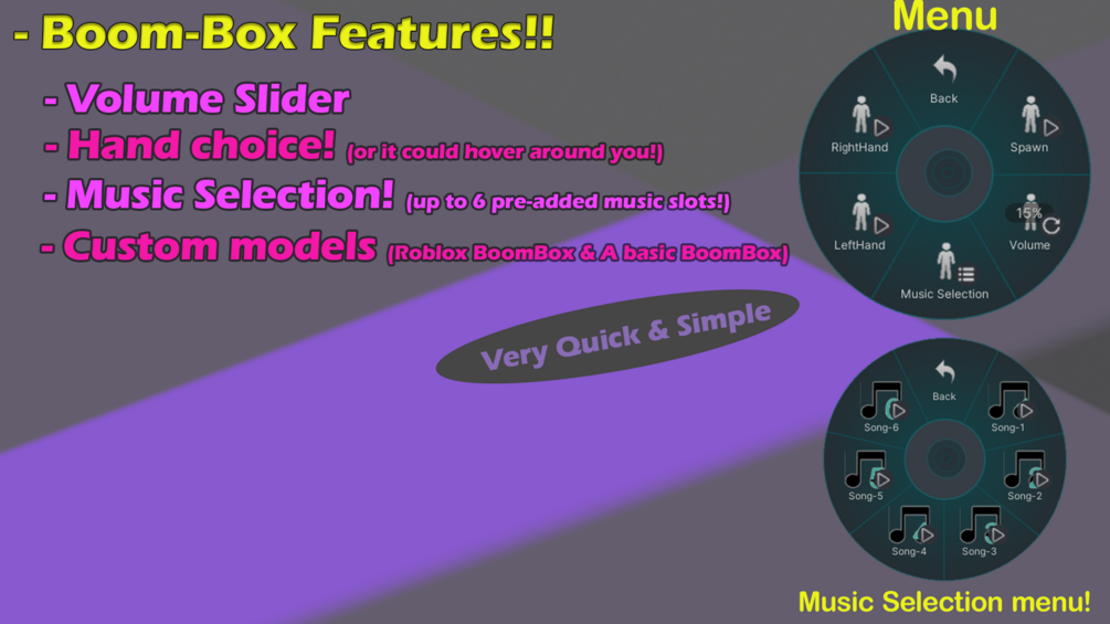 Annoy your friends!, Vibe to Music while staring into a mirror!, Do what ever you want with this VRChat boombox prefab